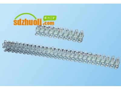 一、產品用途:強度等級不大于1000N/mm織物帶芯輸送帶的聯接。二、產品特點:1、連體式帶扣:接頭受力分布均勻,使用壽命長;接頭直線度好,便于接頭對接;2、“V”形扣釘布置:減少輸送帶裝訂截面的損傷,使接頭強度高;3、獨特的板式扣體:扣體低平、扇形導入面減少